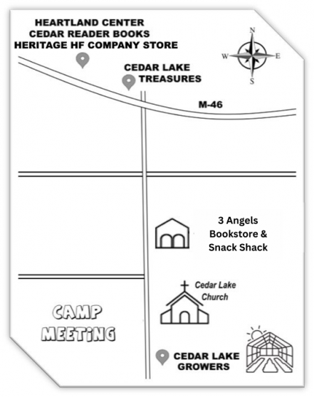 The building at the mill pond, also home of the GLAA Snack Shack, is hosting the Indiana ABC during camp meeting. The Cedar Reader bookstore is located in the Heartland Center on route 46. If you're looking for books this week, visit BOTH spots and find all the reading you need to enrich your walk with Jesus.